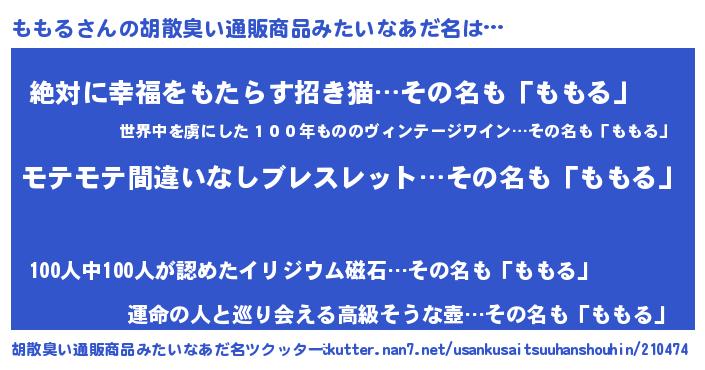 | ヘコむあだ名 | 『ももにー』『ももる(笑)』『豆乳』 |