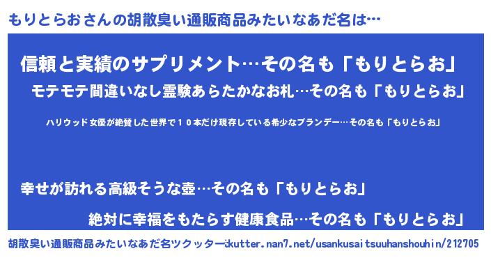 | 意味不明あだ名 | 『住所不定無職もりとらお(79歳)』 |