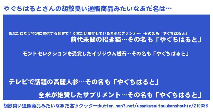 | ヘコむあだ名 | 『やぐっぺ』『やぐちはると(遠い目)』 |