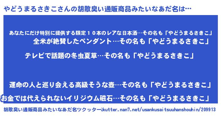 | 意味不明あだ名 | 『自称やどうまるさきこ』 |