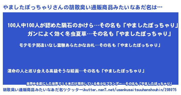 | 男性向けラノベタイトル風あだ名 | 『やましたぽっちゃりの憂鬱』 |