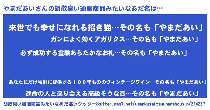 | 可愛いあだ名 | 『やんやん』『やまだあいママ』 |