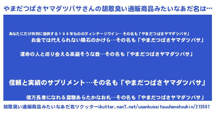 | 伝説のあだ名 | 『最強の忍者やまだつばさヤマダツバサ』 |
