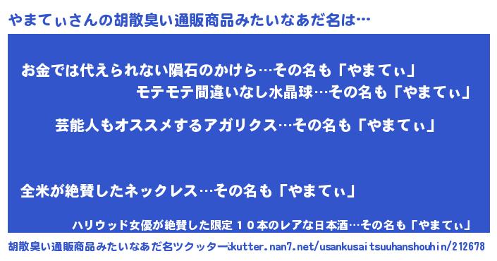 | ヘコむあだ名 | 『やまにゅー』『やまっ子』『豆乳』 |