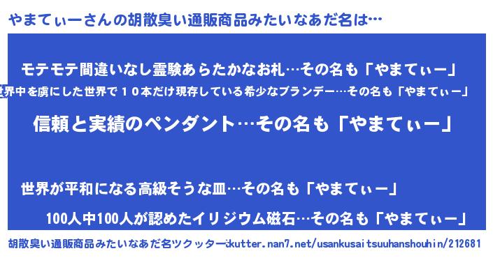 | 意味不明あだ名 | 『とにかく怪しいやまてぃー』 |
