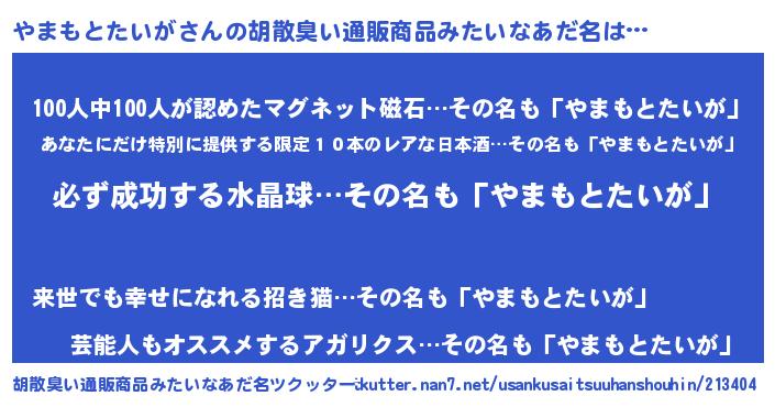 | 恥ずかしいあだ名 | 『プリティーやまもとたいが』『やまちん』 |
