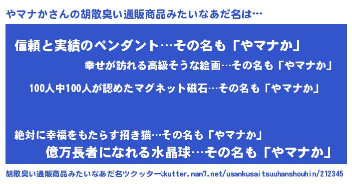 | 肩書あだ名 | 『やマナか教授』『やマナかディレクター』 |