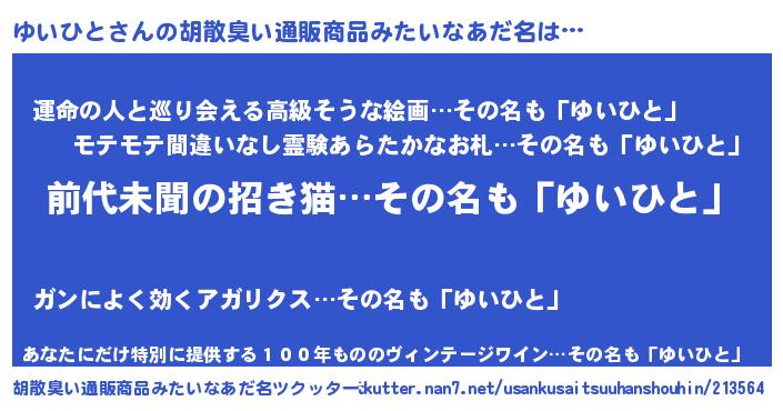 | ヒーロー風カッコイイあだ名 | 『ネオユイヒト』『ウルトラゆいひとマン』 |