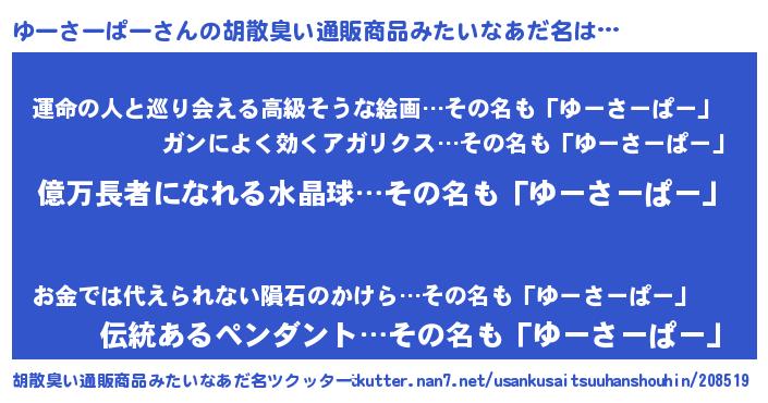 | ポケモン風あだ名 | 『ユーチュウ』『ユーサダネ』 |