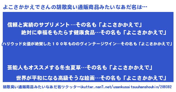 | 意味不明あだ名 | 『住所不定無職よこさかかえで(4歳)』 |