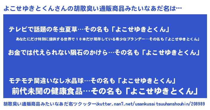| ヘコむあだ名 | 『よこせゆきとくん(震え声)』『よこっぺ』 |