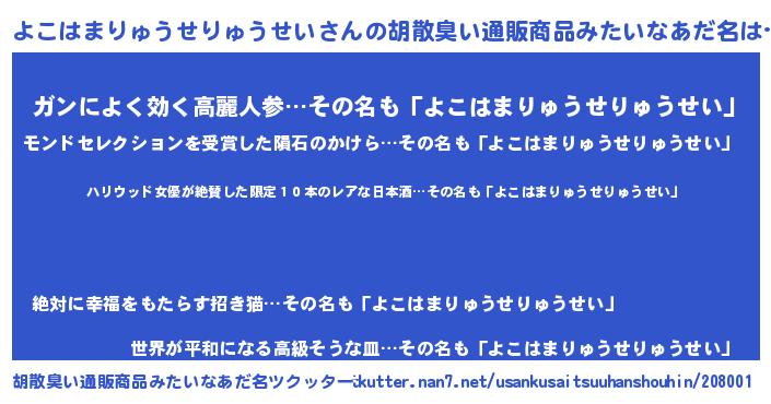 よこはまりゅうせりゅうせいさんの胡散臭い通販商品みたいなあだ名をツクッター!