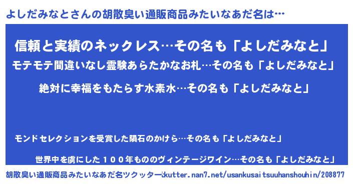 | ヘコむあだ名 | 『よしだみなと(遠い目)』『よしっ子』 |