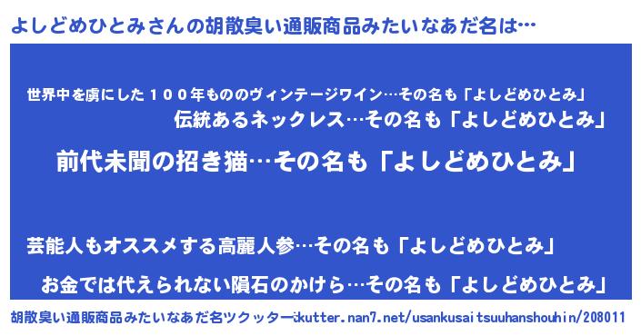| 意味不明あだ名 | 『永久保存よしどめひとみ』 |