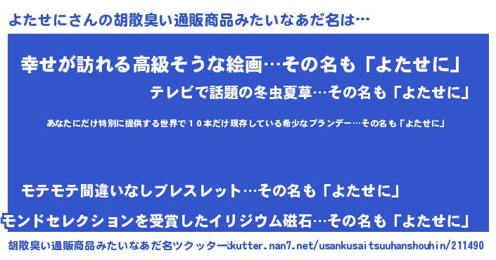 | 意味不明あだ名 | 『住所不定無職よたせに(86歳)』 |