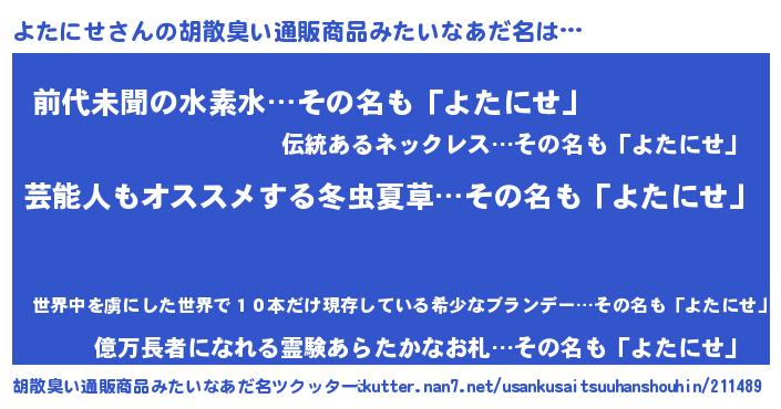 | 意味不明あだ名 | 『自称よたにせ』『永久保存よたにせ』 |
