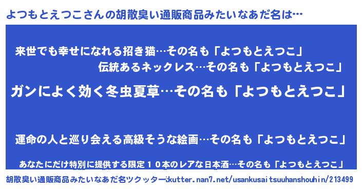| 意味不明あだ名 | 『自称よつもとえつこ』 |