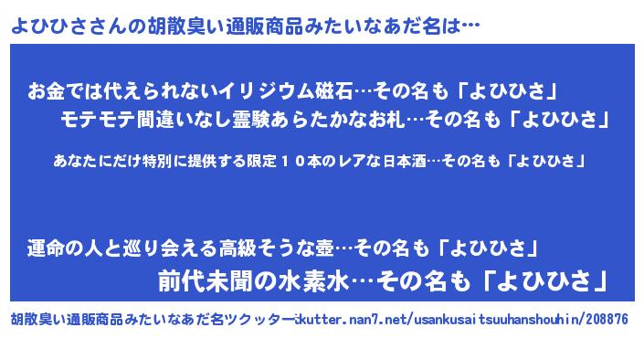 | ヘコむあだ名 | 『よひひさ(爆)』『よひにゅー』 |