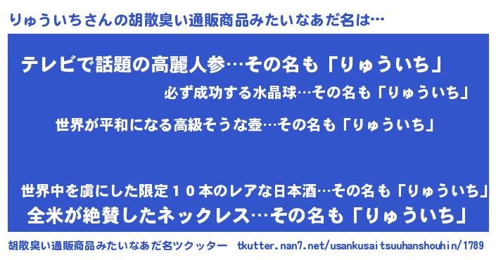 | 男性向けラノベタイトル風あだ名 | 『転生したらりゅういちだった件』 |