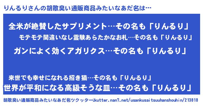| 女子向けラノベタイトル風あだ名 | 『りんるりなんてお断りですっ。』 |