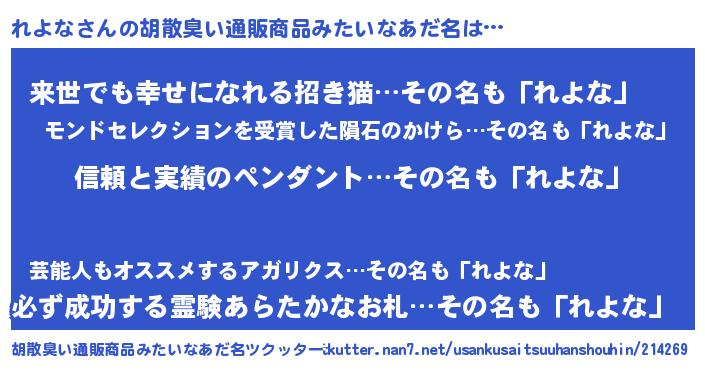 | ヘコむあだ名 | 『れよっちょ』『れよな(小並感)』 |
