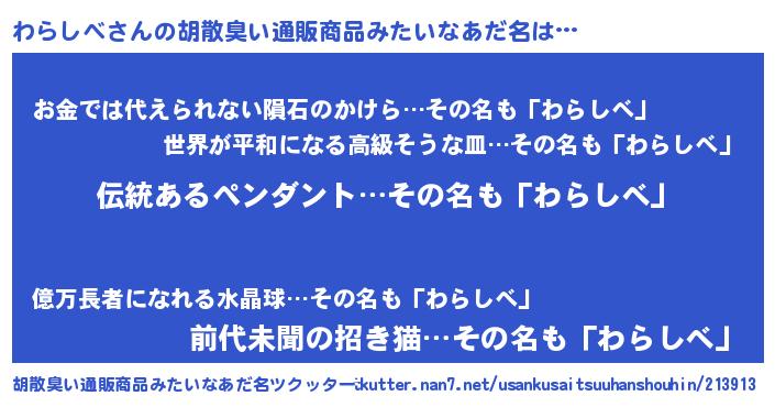 | 意味不明あだ名 | 『とにかく怪しいわらしべ』 |