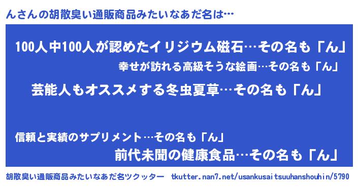 | ヒーロー風カッコイイあだ名 | 『究極戦士ン』『友情の使者ん』 |