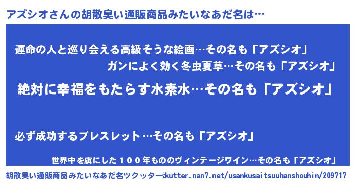 | 意味不明あだ名 | 『永久保存アズシオ』『自称アズシオ』 |