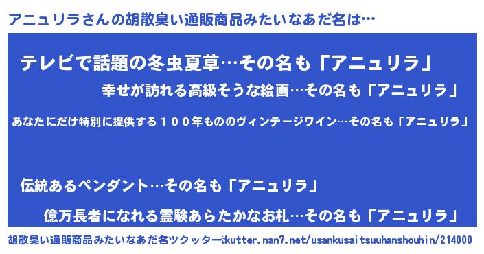 | 恥ずかしいあだ名 | 『アニュリラデラックス』『アニっちょ』 |