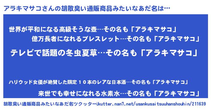 | 意味不明あだ名 | 『自称アラキマサコ』 |