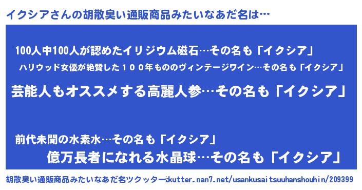 | ヘコむあだ名 | 『イクにー』『イクシア(笑)』『牛乳』 |