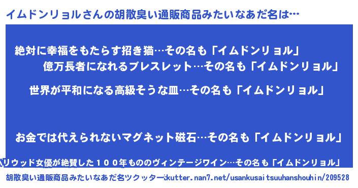 | 意味不明あだ名 | 『イムドンリョルフォーエバー』 |