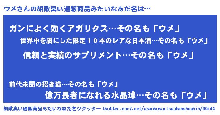 | ヘコむあだ名 | 『ウメを』『ウメにゅー』『ウメ(爆)』 |