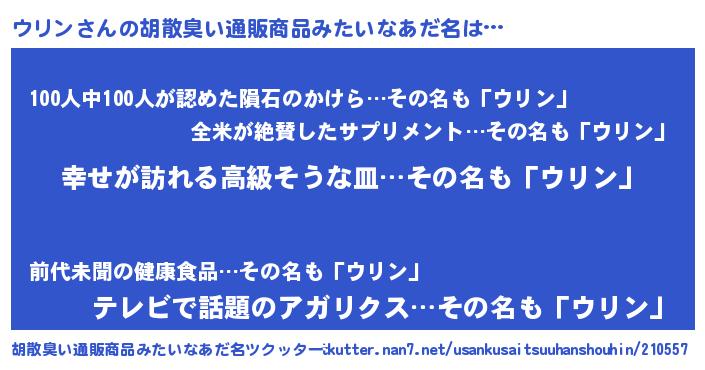 | 意味不明あだ名 | 『ウリンフォーエバー』『自称ウリン』 |