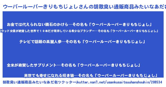 | ヒーロー風カッコイイあだ名 | 『ウルトラ戦士ウーパールーパーキリモチジョシ』 |