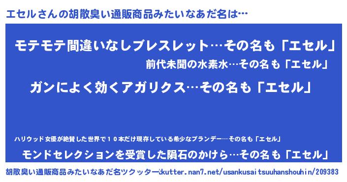 | 女子向けラノベタイトル風あだ名 | 『エセルなんてお断りですっ。』 |