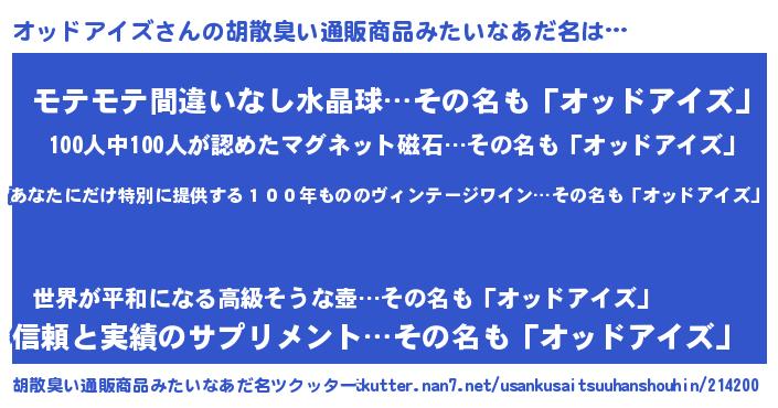 | 意味不明あだ名 | 『住所不定無職オッドアイズ(12歳)』 |