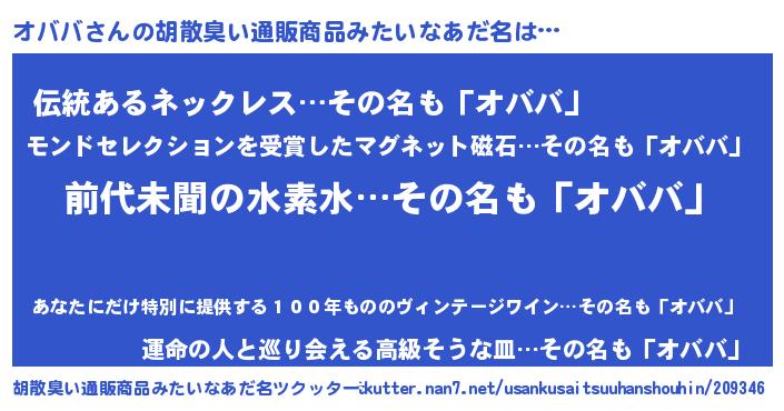| 意味不明あだ名 | 『永久保存オババ』『オババフォーエバー』 |
