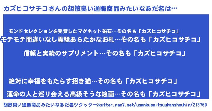 | 意味不明あだ名 | 『とにかく怪しいカズヒコサチコ』 |