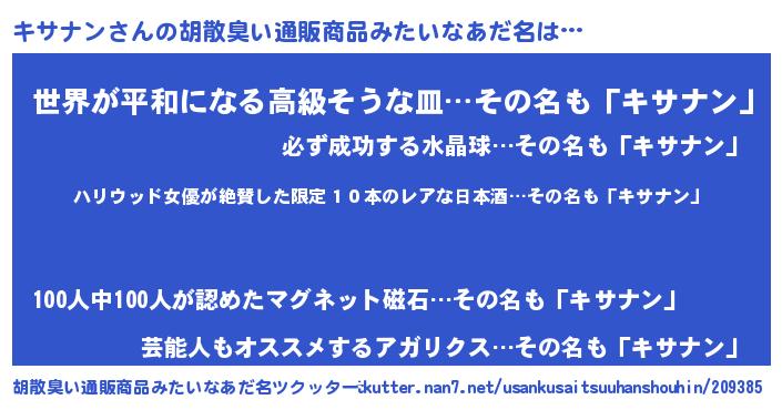 | 男性向けラノベタイトル風あだ名 | 『キサナンスレイヤー』『緋弾のキサナン』 |