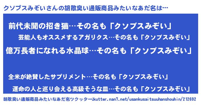 | 恥ずかしいあだ名 | 『プリティークソブスみぞい』『クソちん』 |