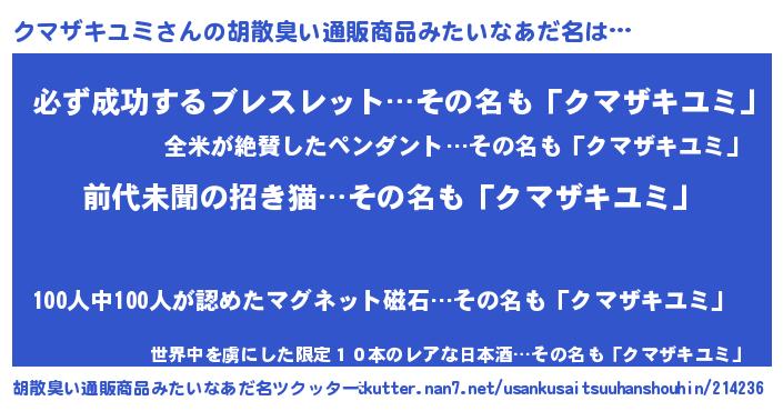 | 意味不明あだ名 | 『永久保存クマザキユミ』 |