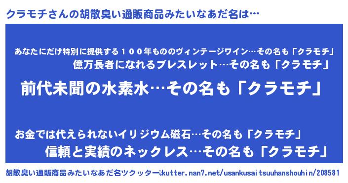 | ヘコむあだ名 | 『クラモチ(苦笑)』『クラを』『牛乳』 |