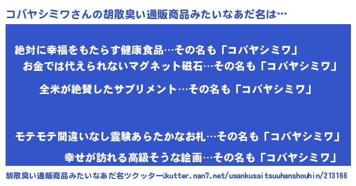 | ポケモン風あだ名 | 『コバキング』『ヒコバヤシミワ』 |