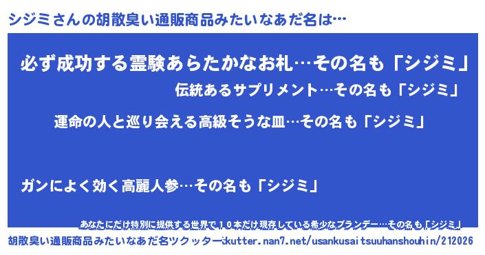 | ヘコむあだ名 | 『酢こんぶ』『シジっふぃ~』 |