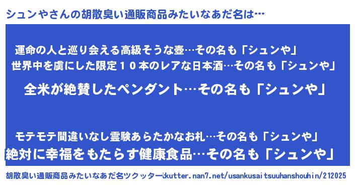 | 女子向けラノベタイトル風あだ名 | 『シュンや様がみてる』 |