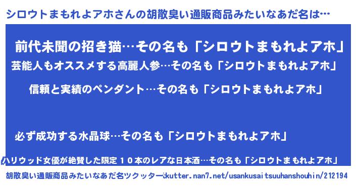 | 意味不明あだ名 | 『とにかく怪しいシロウトまもれよアホ』 |