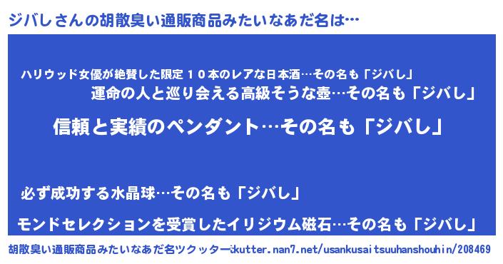 | 意味不明あだ名 | 『とにかく怪しいジバし』 |