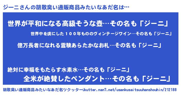 | 意味不明あだ名 | 『ペロリンジーニ』『ジーニフォーエバー』 |