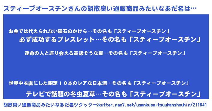| 欧米人風あだ名 | 『スティーブオースチンクリステル』 |